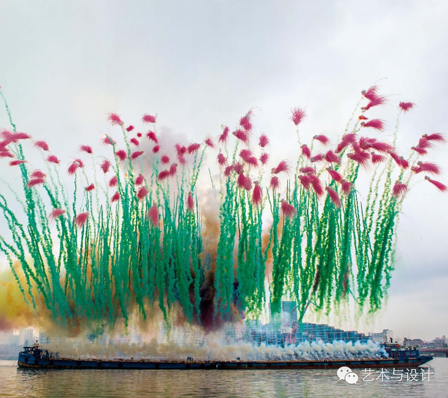 蔡国强表示,作品创作的初衷是受俄罗斯画家艾伊瓦佐夫斯基的油画《九级浪》启发。九级浪为海浪最高等级,又称“怒涛”。油画里,海面仅存一根桅杆,人们赖此挣扎求生,可是前方滔天巨浪压顶而来,千钧一发……《九级浪》表现的是人类在大自然面前的渺小和无力。无论是空中的雾霾、还是江上的死猪,生态环境问题在中国都到了紧要关头,也是当今人类共同面临的挑战。蔡国强强调,此次焰火表演所用的材质是印度胡里节(色彩节)里所使用的矿物质颜料,对人体无害。但是这一条消息发出时,“事件”已然形成,网络上的批评亦如滔天巨浪席卷而来。这也从侧面表现出中国生态环境问题已然到了风口浪尖,让人们风声鹤唳,草木皆兵。